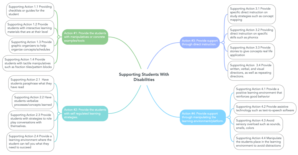 On this project I was the Subject Matter Expert. I am a Certified in Special Education and have many years of experience working with students with disabilities. With so much information out there I wanted to develop a clear action map and overall goal. I wanted to boil everything down to four main actions that any teacher or advisor could use to support their student.