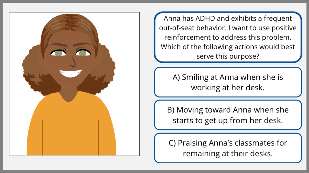 I recommended the scenario-based eLearning experience because it allows the teachers and advisors to work through real life classroom scenarios in a risk free environment. Furthermore, the scenario-based eLearning shows teachers and advisors the realistic outcomes for poor and exceptional accommodations made for the students; as well as an opportunity to learn the correct accommodation if the wrong one is chosen.