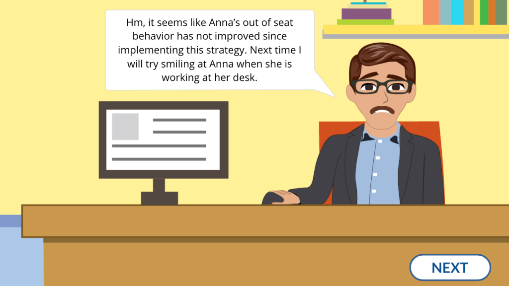 Throughout the scenario I created additional full slide assets to help reinforce the appropriate accommodation for the student. After showing the visual assets to the client and getting the approval to move forward I moved on to creating the interactive prototype.